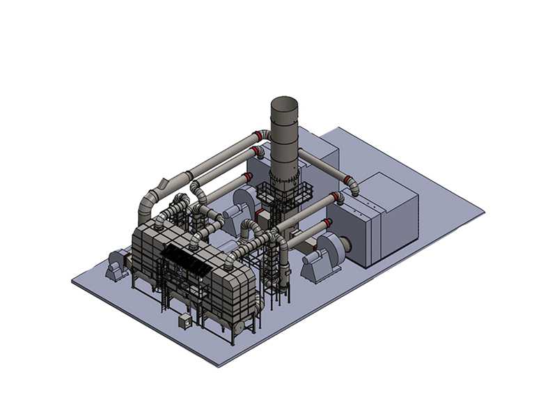 经过预处理的废气进入沸石浓缩转轮+蓄热式焚烧炉系统,利用沸石分子筛的多孔吸附性将有机物吸附浓缩,浓缩后的有机物经RTO高温(≥750℃)将有机组分中的C、H化合物氧化分解成无害为CO2和H20等,达到净化空气的目的。